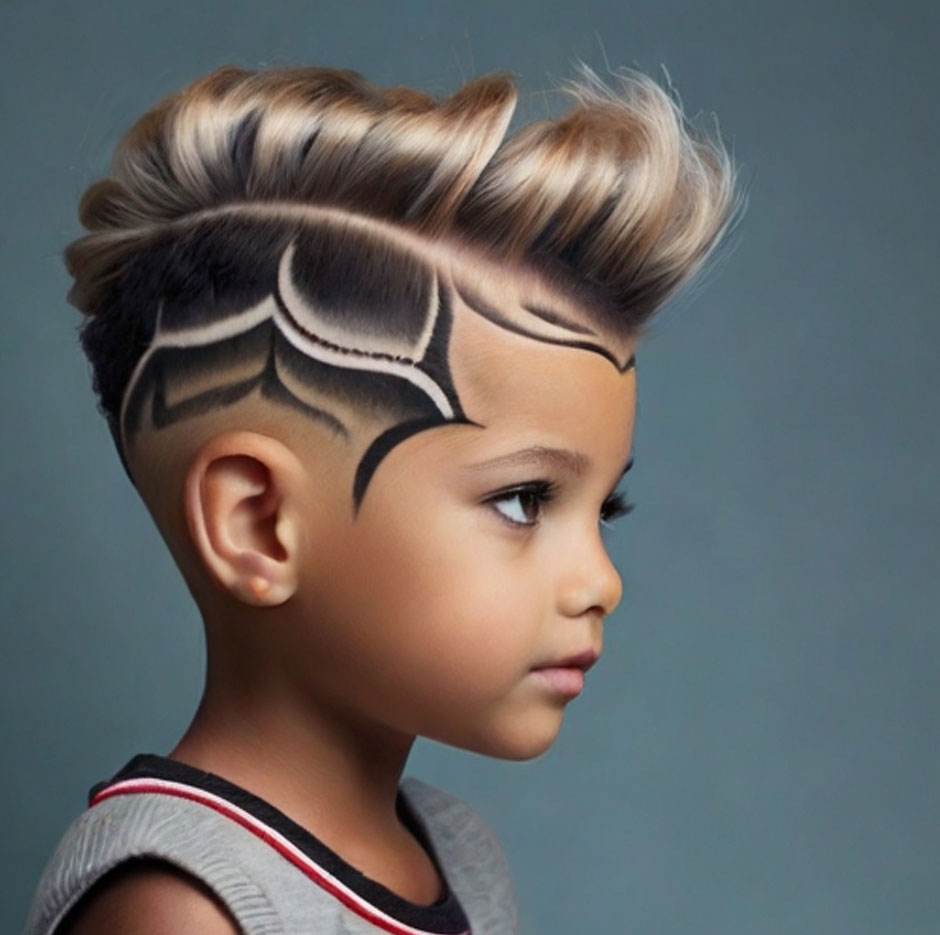 To achieve the undercut with a design, consult a professional barber who specializes in intricate designs. They will use clippers and precise techniques to create the desired design on the undercut area. This haircut allows your toddler to showcase their creativity and individuality.