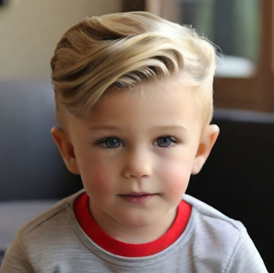 To style the side swept fringe, use a comb and a small amount of styling product to create a defined part and gently sweep the hair to one side. This haircut is versatile and can be tailored to suit your toddler's hair type and preferences. The side swept fringe is a fashionable choice that adds charm to your little one's style.